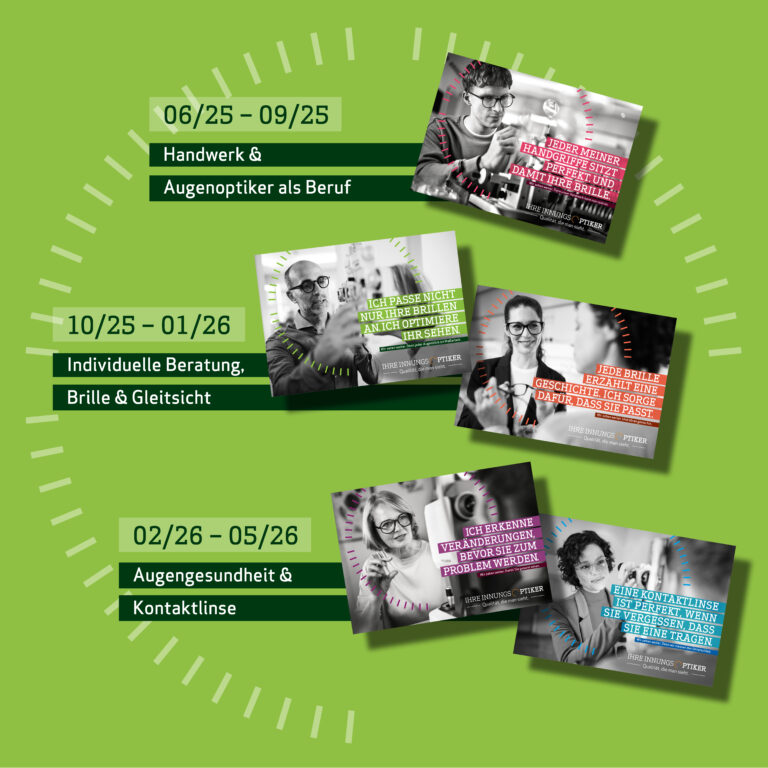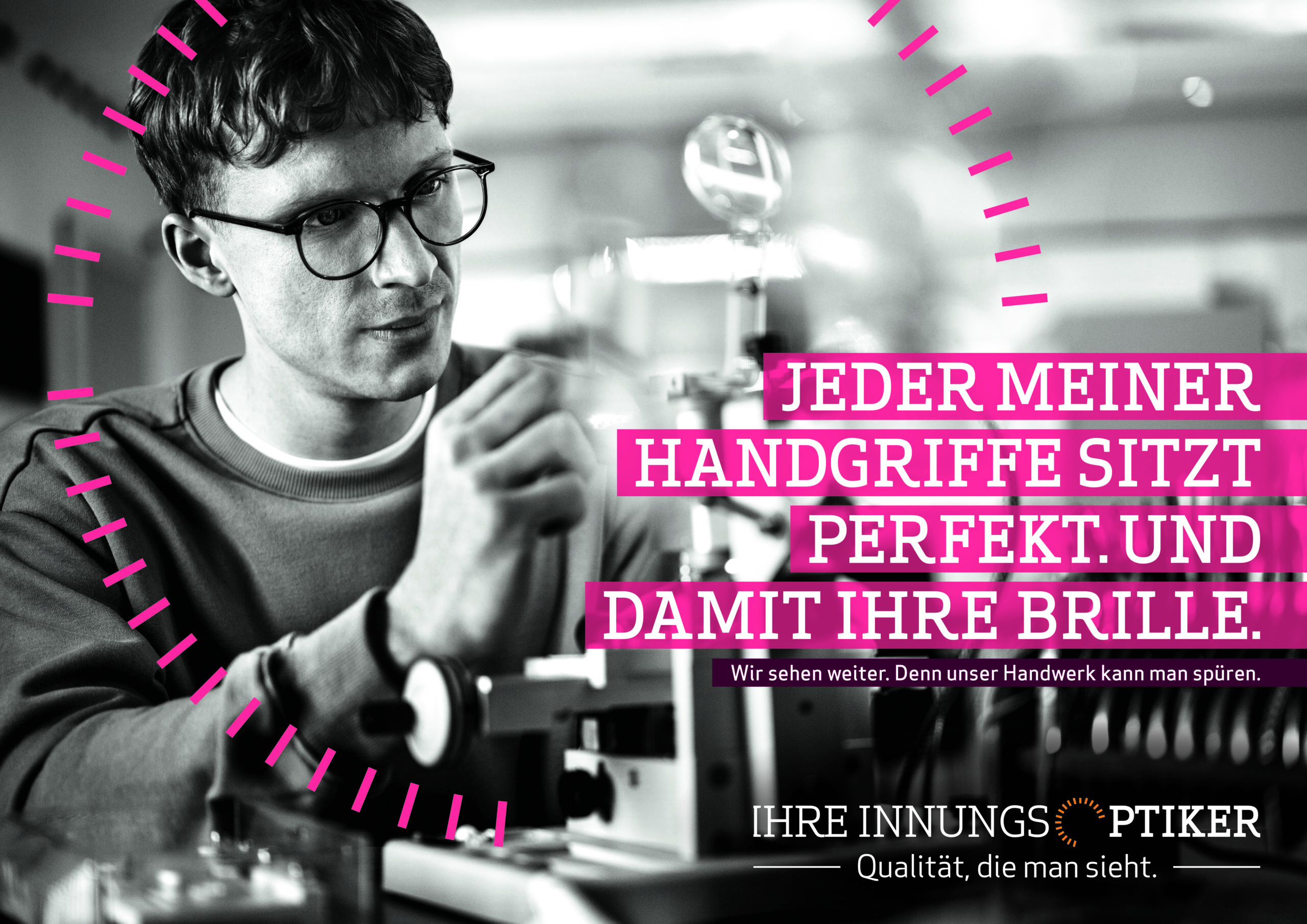 Die “Innungsoptiker”-Kampagne geht in die vierte Runde! Dabei setzt sie bewusst einen neuen Fokus – sowohl in ihrer Gestaltung als auch in ihren Aussagen. Jetzt werfen wir einen beobachtenden Blick auf das, was uns und unseren Berufstand tagtäglich antreibt: das Verhältnis zwischen Augenoptiker und Kunde. Was wir dabei nicht aus den Augen lassen: All das, was uns als Innungsoptiker ausmacht – handwerkliche Qualität, beste Beratung und individuell angepasste Produkte. Der Leitsatz “Ihre Innungsoptiker-Qualität die man sieht” bringt es auf den Punkt.